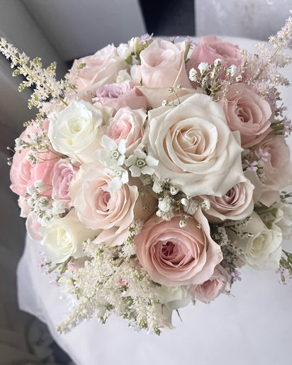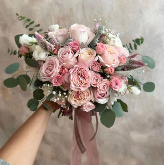 最常用的花材如大小的玫瑰、宮庭玫瑰、滿天星、繡球花、風信子、粉白雪、不同種類的尤加利籽葉、dusty miller等等...